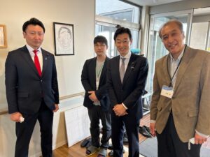 ボクはミーハーなので、お客さまがいらっしゃるとなれば必要以上に見栄をはる人間でございますが、見栄をはるからこそ成長するのだといつも自分に言い訳しております。というわけで、ちゃんと見栄をはり、しかもミーハーなので写真もいっしょに撮っていただき、西村議員と高橋議員の許可をいただいて、ホームページにアップしちゃっております。