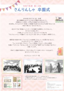 はるにれの里 HOME > イチオシの取り組み(事業所自慢) さんりんしゃ卒園式 2026.03.30 3月27日金曜日、児童発達支援センターさんりんしゃの卒園式でした。ご家族からお言葉をいただく場面が式の中であり、加藤の涙腺もゆるゆるになったとてもいい卒園式でした。スタッフからの報告を載せます。 ◀︎ シン加藤のコラム(理事長やってます)