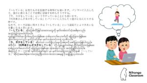 とはいえ、私たち日本人にとっても難しい日本語。違う言語を使用する国から来た彼らにとってはかなり難しい。しかし今後、ケース記録に利用者さんのご様子を記録したり、普段おこなっている支援についてより深く知ってもらったりするとなると、簡単な文だけでなく、もう1ステップ上の日本語を使っていきたい。ということで、ミャンマーから来た2人のサポートを色々としてくださっている職員が、彼らに向けて日本語の勉強会を開催してくれました。