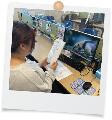 バディ制度のそのほかに、なないろでは生活介護の職員を2つのグループに分けた班活動を行っており、その班活動でも支援に関する困った事は相談できるのですが、新人の頃はそういった場で発言する事はとても勇気がいると思います。しかし、1年目の私にはバディと言う、とっても強い味方がいたので、現場に入っていて支援で困った事でも、その他にも悩みがあれば聞いて頂いていました。